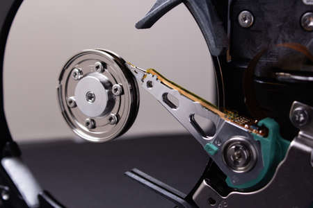Computer Hard Disk Close up reading Data. Technology Data Recovery Concept