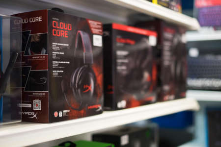 Kuantan, Malaysia - October 18th, 2017 : In-store display of computer headphones inside of the Asus Store at Kuantan Shopping Mall.