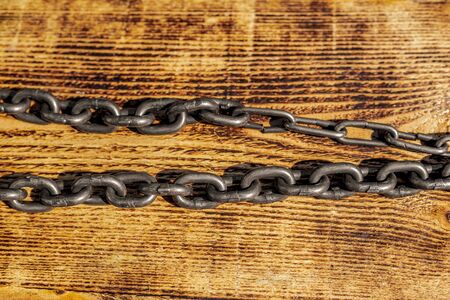 big chains on the brown wooden background