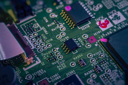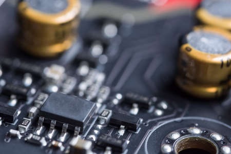 Close-up of electronic circuit board. Technology background. Selective focus.