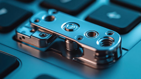 Cybersecurity, motherboard with safety lock. Generative AI.