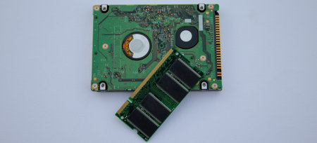 Image of a ram memory and a hard disk of a computer. Technological components of a pc. Banners