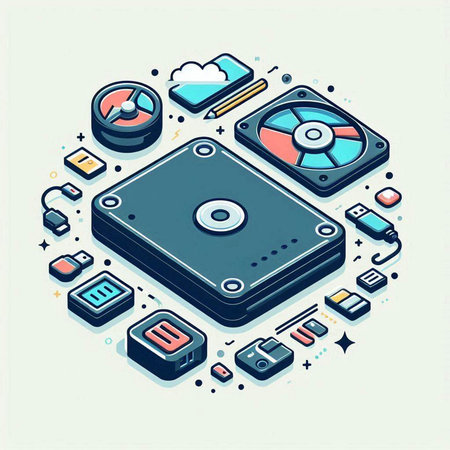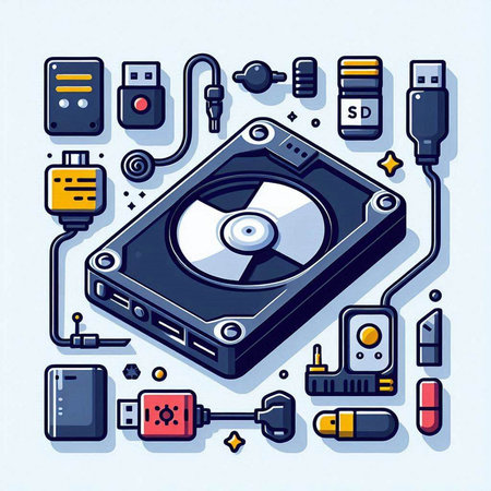 Vector illustration of a hard drive with different types of electronic components.