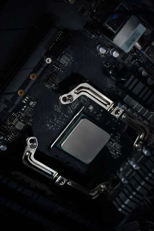 Close-up of a computer processor on the motherboard. High quality photo