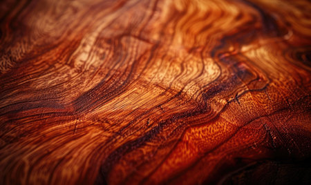 Polished mahogany surface showcasing rich colors and natural patterns in wooden craftsmanship