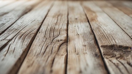 A top-down shot of a reclaimed wood floor with visible grain, knots, and weathering for a rustic aesthetic