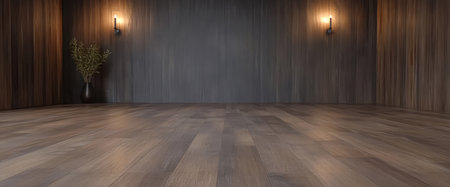 Empty interior design room with Shiny wooden parquet floor. AI generated image