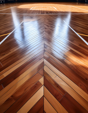 Wooden court gleams under bright lights as teams prepare for an exciting matchup in sports.
