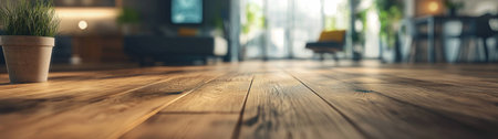 polished wooden floor of thin boards in interior of house, created with generative ai