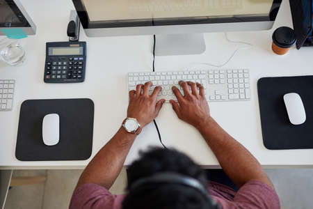 His schedules busy today. High angle shot of an unrecognizable businessperson using a keyboard at work.