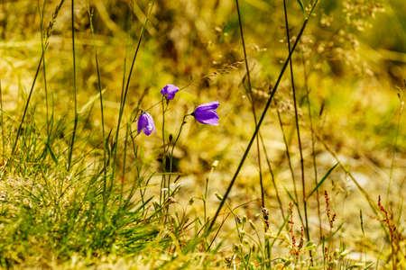 Purple flowers of the field bell in the afternoon