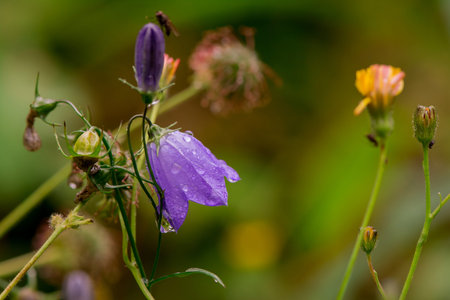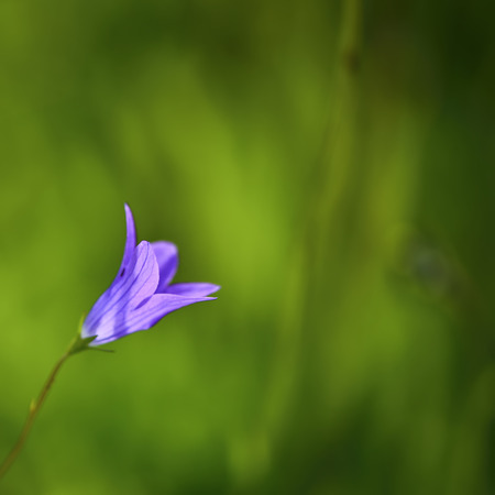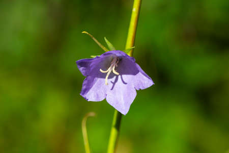 Beautiful flower close up. Campanula rotundifolia with green background