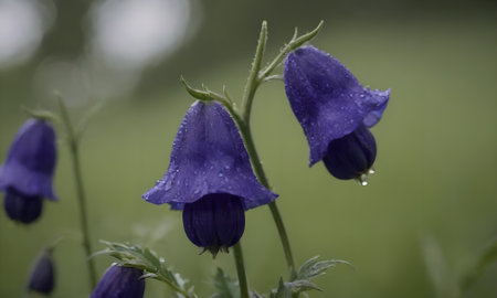 Purple bellflowers with dew drops on the petals