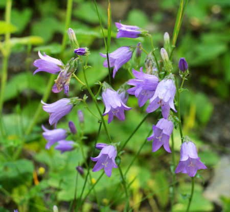 Little purple campanula flowers. Forest Blue bell flowers.