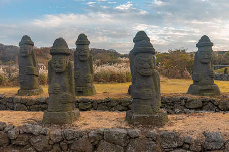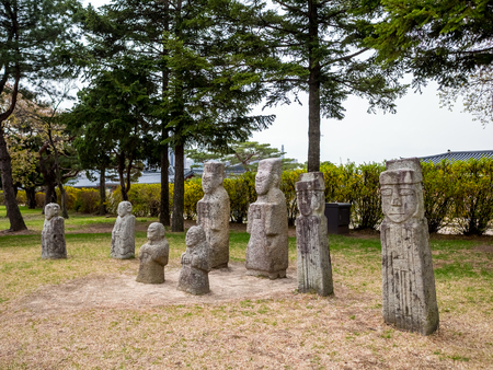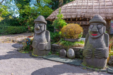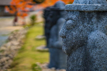 The traditional Dol Hareubang statues of Jeju Island in South Korea