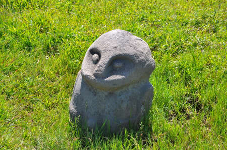 A stone anthropomorphic statue in a clearing. Photo taken in Chelyabinsk, Russia.