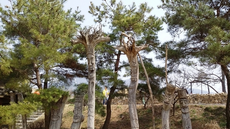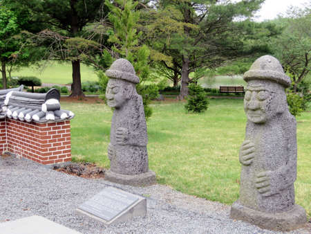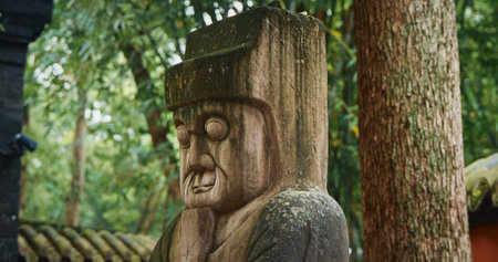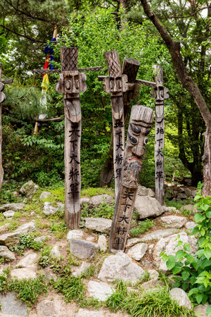Seoul, South Korea - June 12, 2017: Village guardians or Jangseung in korean folk village Minsok