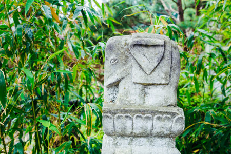 RATCHABURI, THAILAND-MAY 12, 2019 : Beautiful Moai imitation of the real statue simulates a roadside coffee shop symbol (Moai theme cafe) at Moai coffee shop, Suan Phueng, Ratchaburi.