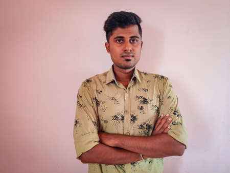 Portrait of clean shaved young South Indian man with his arms crossed