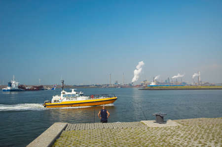 RPA 11 patrol ship of Rotterdam Port Authority heading to Botlekbrug in the Netherlands