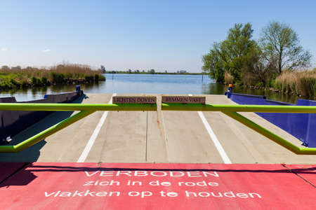 Tiengemeten, The Netherlands - May 31, 2021: Ship crossing to island and nature reserve Tiengemeten Hoeksche Waard n South Holland in The neteherlands