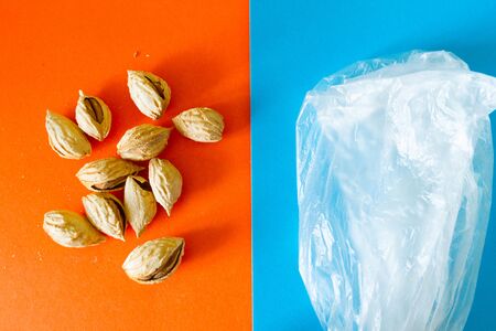 Organic pistachios in the sun, healthy food and snack background
