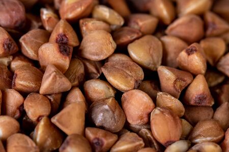 Texture background grain buckwheat groats. Macro photo. Texture.