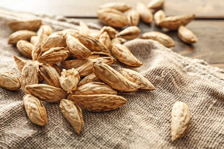 Unpeeled almond nuts on table