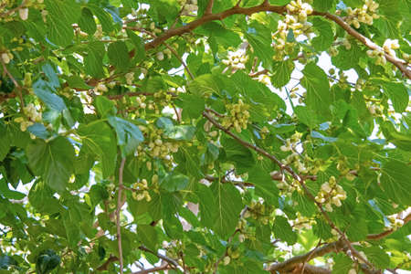 mulberry tree and mulberries with green leaves