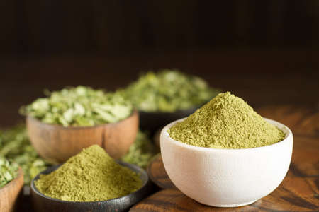 leaves and moringa powder, super food and natural medicine, Moringa oleifera.