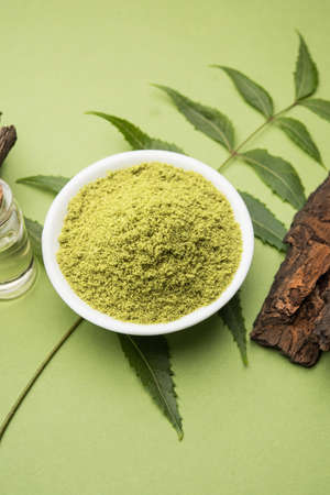 Neem or Indian Lilac face mask isolated on white for acne and scars consisting of gram flour, neem paste, and some curd.