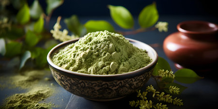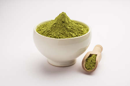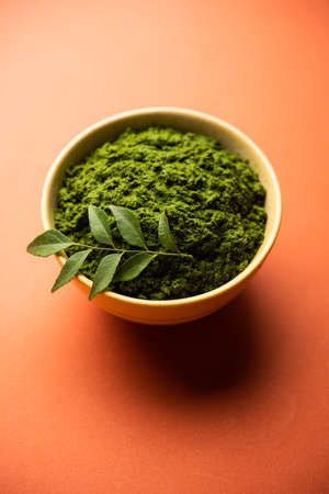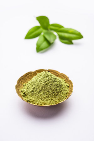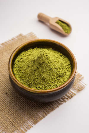 Herbal henna or Mehandi powder in a bowl forming heap, Used for Tattoo or Hair Dye in India