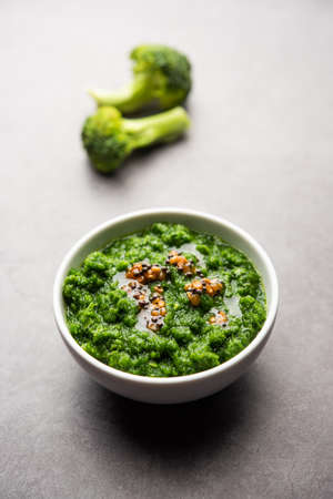 Fresh broccoli chutney or paste, puree in the bowl with raw pieces