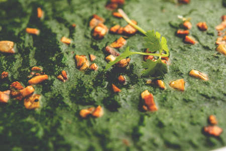 Palak paneer, a popular vegetarian dish in Indian cuisine made with spinach and paneer cheese.