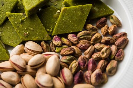 Indian festival Holi concept - Traditional Indian beverage Thandai Sardai milk festival food, with nuts and color in bowl.