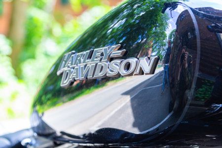 WUNSTORF / GERMANY - JUNE 7,2019: Harley Davidson logo on a black motorcycle. Harley Davidson is an American motorcycle manufacturer founded in 1903 in Milwaukee, Wisconsin.
