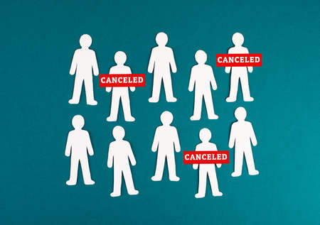 Group of people, some are discrimitated, cancel culture issue, thought control, censorship of free speech, paper cut out