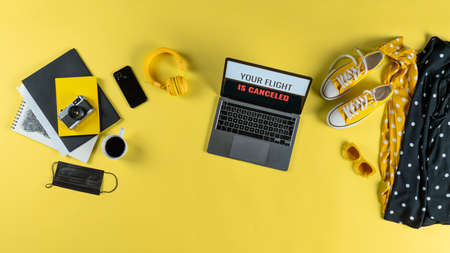 Programme Cancelled written on wooden blocks. Blurred vintage styled background.