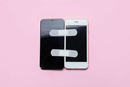 Word writing text Bankrupt. Business photo showcasing reduced to a state of financial ruin or exhausted of something Displaying Empty Sticker Paper Accessories Smartphone With Medical Gloves On