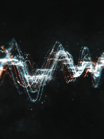 Abstract design displays sound waves on a dark background. The visual represents audio in a minimal style without distractions.