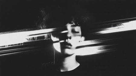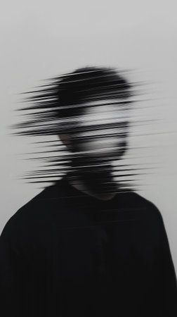 This striking image captures the essence of shifting identities using motion blur to convey the complexities of self perception and the passage of time.