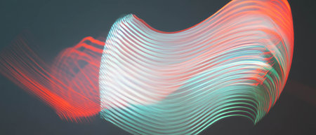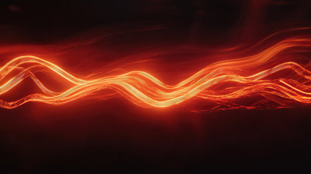 Dynamic flowing waves of red light create an abstract expression of energy and motion against a dark background, perfect for artistic projects.