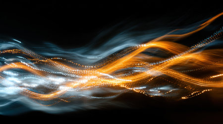 Bright light trails create dynamic sparks against a dark background for visual impact