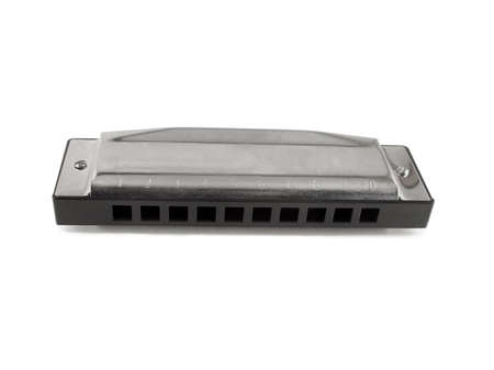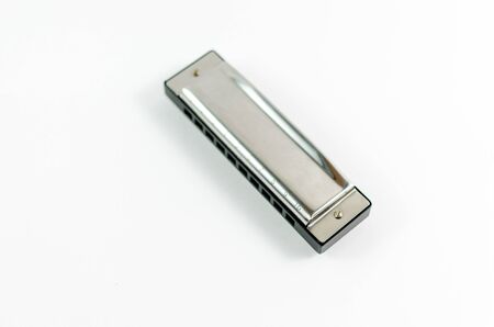 Silver diatonic blues harp isolated on white background