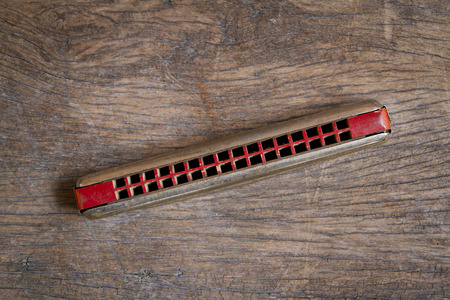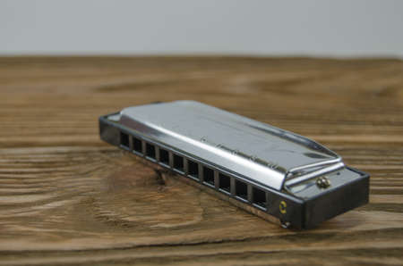 Mouthorgan on wooden background