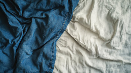 This image captures a serene composition of softly draped textiles in blue and white, showcasing the elegance of contrasting fabrics. Perfect for home decor inspiration.