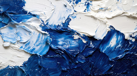 showcases thick, textured impasto brushstrokes of a deep, rich blue paint applied to a white canvas. The paint is applied with a heavy hand, creating visible ridges and valleys that catch the light, highlighting the tactile of the medium. The contrast between the dark blue and the bright white background is striking, emphasizing the bold and expressive nature of the close-up perspective reveals the intricate details of the paint application, offering a glimpse into the creative process.