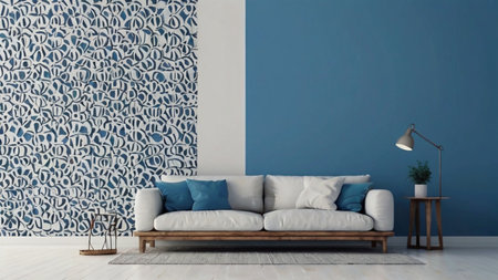 modern living room with blue wall and sofa