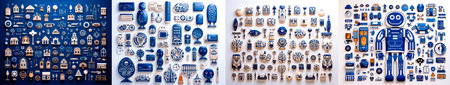 Unique hand-painted blue tiles featuring intricate patterns and designs with artistic flair