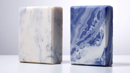 Generative AI : handmade natural indigo cold process soap bar on white background